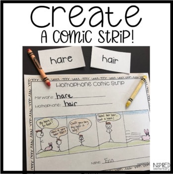 As a fun extension activity students work together to create a comic strip for the bulletin board or to make a Class Book of Homophones. Differentiated comic strip pages are included for you to choose.