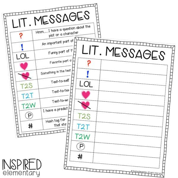 Lit. Messages are simply thoughts that the reader has about the text during reading, that they write down on a “Lit. Message” page or sticky note. This practice helps students analyze and evaluate the text in a fun way!